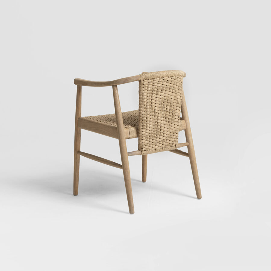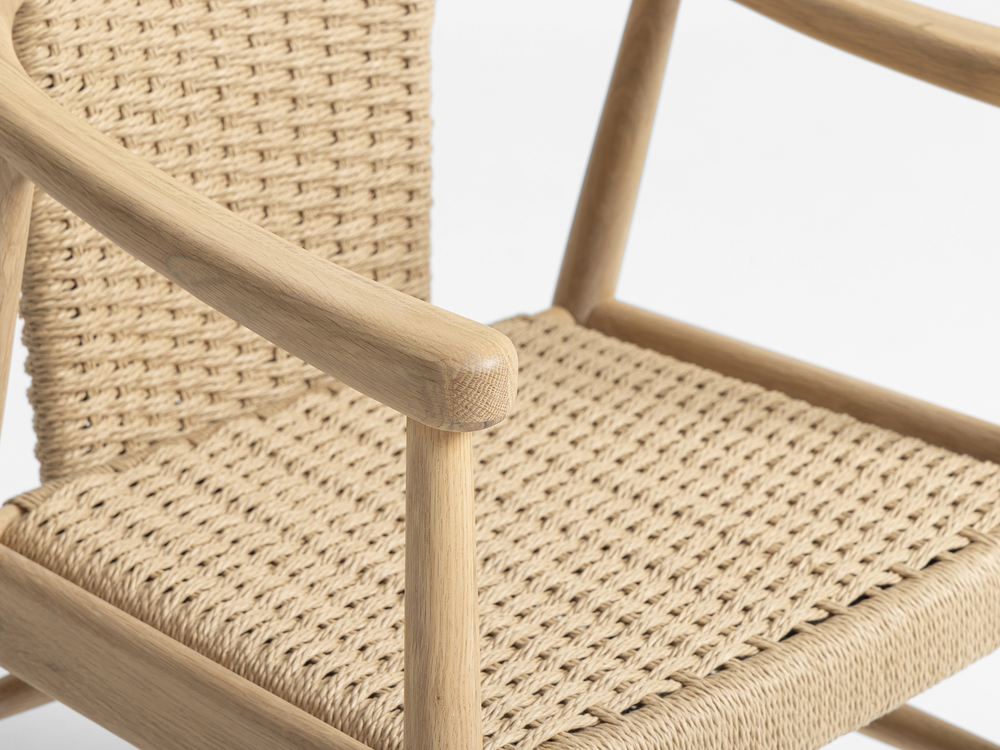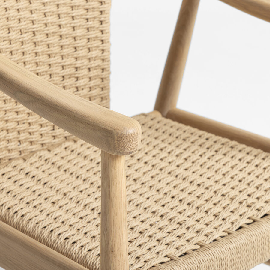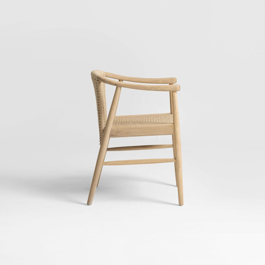 Julia är en tidlös matstol med skandinavisk känsla. Tillverkad i massiv vitoljad ek med en sits flätad i naturrep, kombinerar den hållbarhet med taktil elegans. Stolen passar lika bra runt ett rustikt träbord som i en modern miljö med ljusa toner och naturliga material. Varje detalj är noggrant utformad för att skapa en möbel som håller över tid – både stilmässigt och funktionellt.