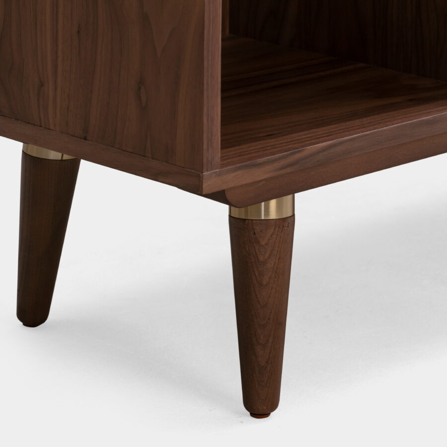 Lady hylla – Ek & Valnötsfanér Stilren hylla med enkla linjer och generös förvaring för böcker eller dekoration. Tillverkad i massiv ek och valnötsfanér som ger en varm, naturlig känsla. De konade träbenen har diskreta kromade detaljer som tillför en sofistikerad finish. Passar lika bra i vardagsrum som i hall eller kontor.