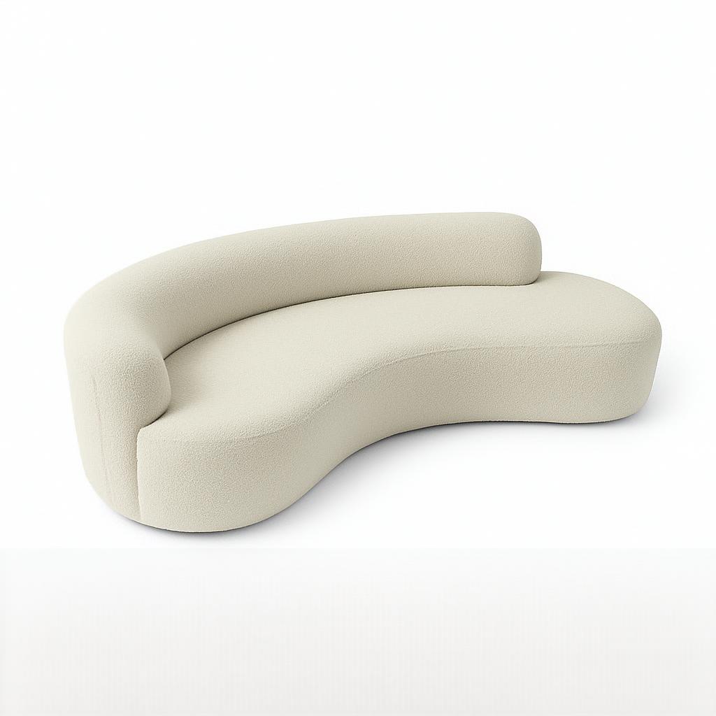 Luma är en svängd soffa med mjuk form som gör den till ett naturligt blickfång i vardagsrummet. Den asymmetriska designen ger ett skulpturalt uttryck, samtidigt som soffan är bekväm att sitta i – oavsett vinkel.