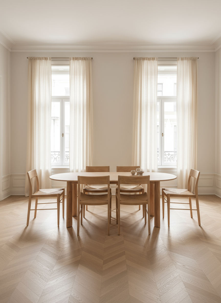Detta matbord i ek är en hyllning till skandinavisk design, där enkelhet och funktionalitet står i centrum. Med rena linjer och harmoniska proportioner är bordet både elegant och tidlöst. Det är en möbel som inte bara erbjuder en plats för måltider, utan även blir en stilren del av din inredning.