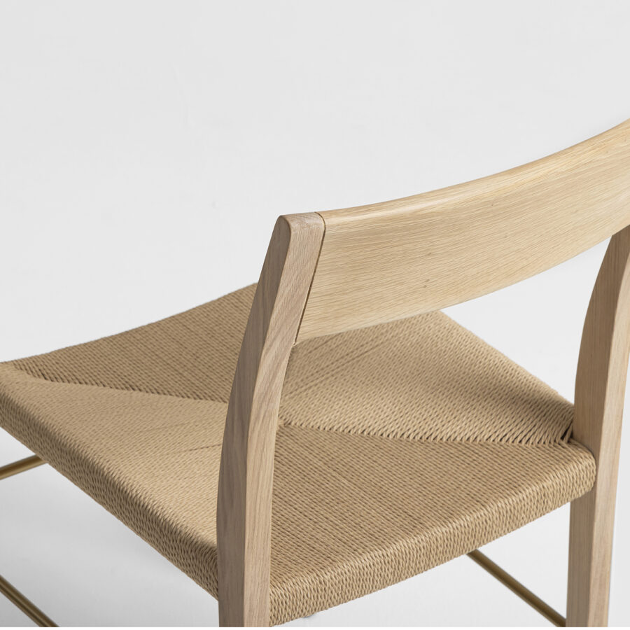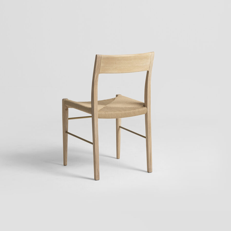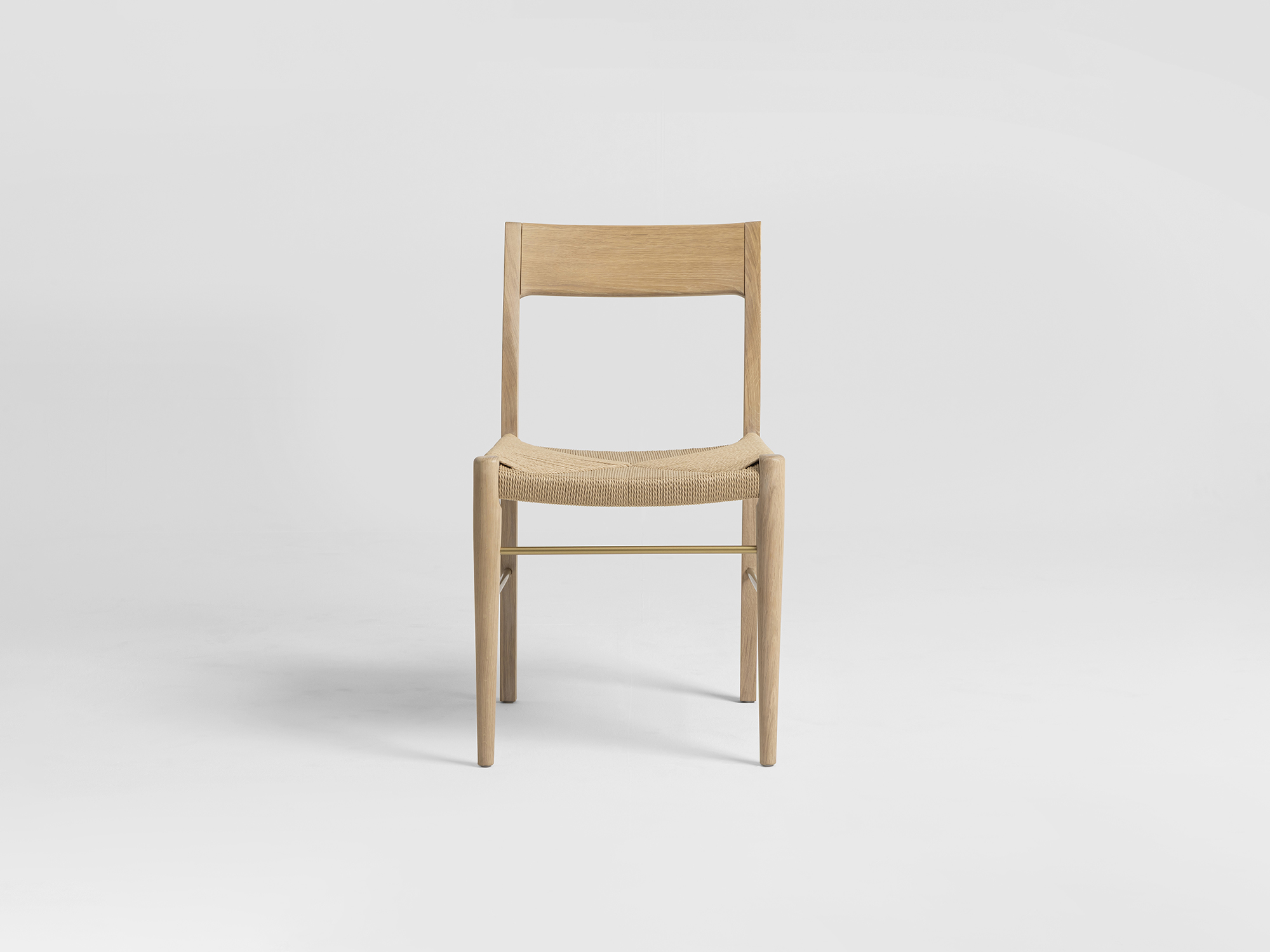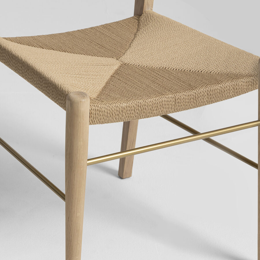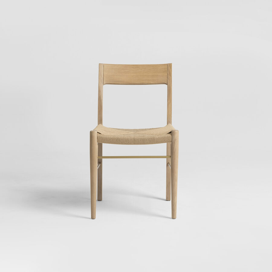 Palma matstol kombinerar massiv ek med en flätad sits i naturligt rep, vilket ger både hållbarhet och komfort. Dess rena linjer och organiska material skapar en tidlös design som passar i många miljöer.