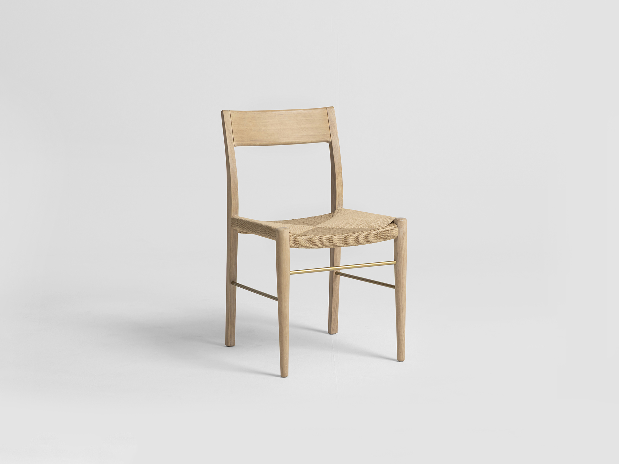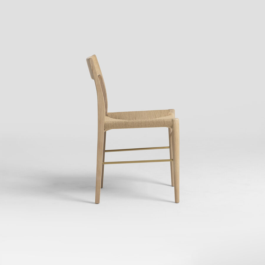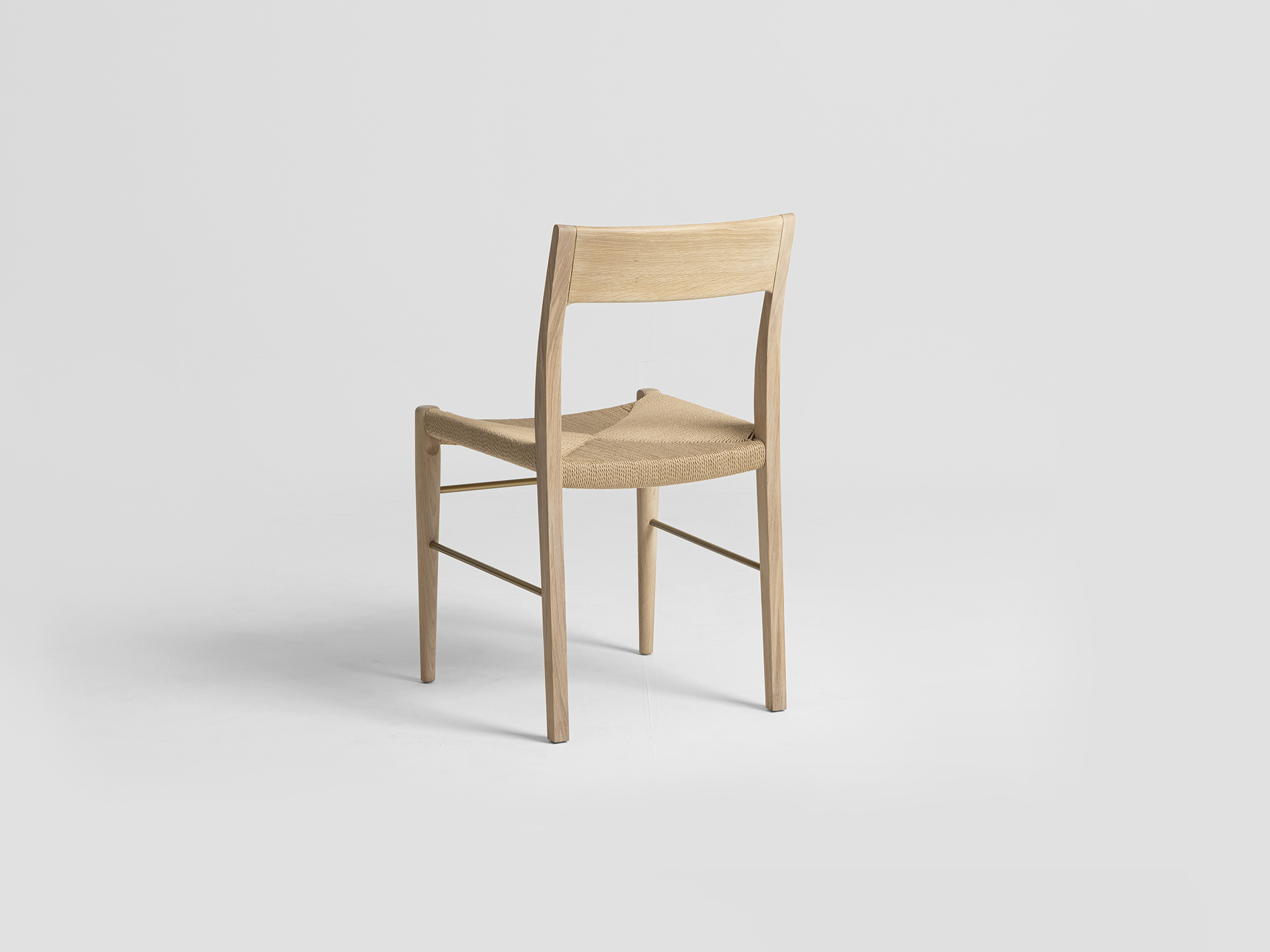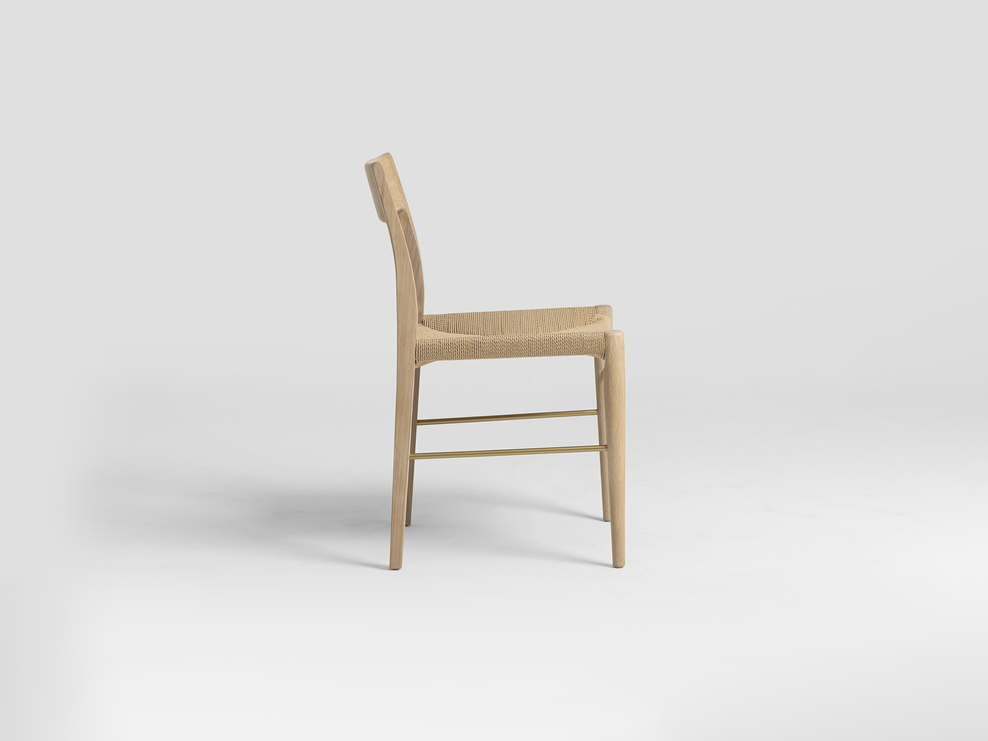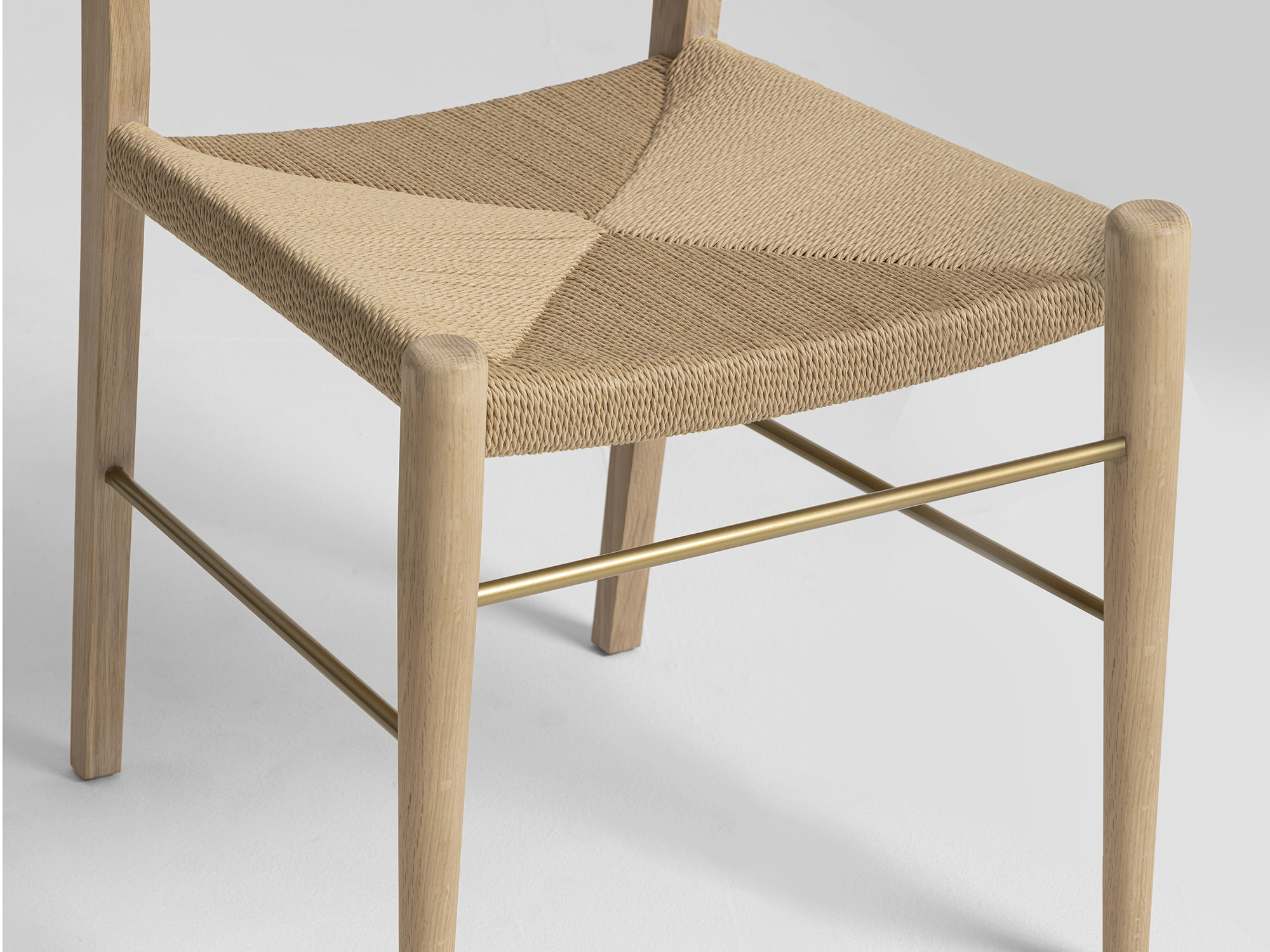 Palma matstol kombinerar massiv ek med en flätad sits i naturligt rep, vilket ger både hållbarhet och komfort. Dess rena linjer och organiska material skapar en tidlös design som passar i många miljöer.