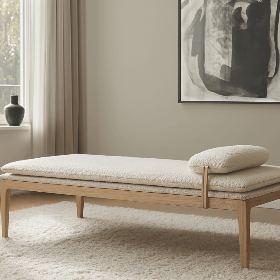 Pamla är en elegant dagbädd med mjuka linjer och balanserad design som passar lika bra i vardagsrummet som i sovrummet eller hallen. Den fungerar både som extra sittplats och som en avslappnad loungeyta – perfekt när du vill kombinera form och funktion.