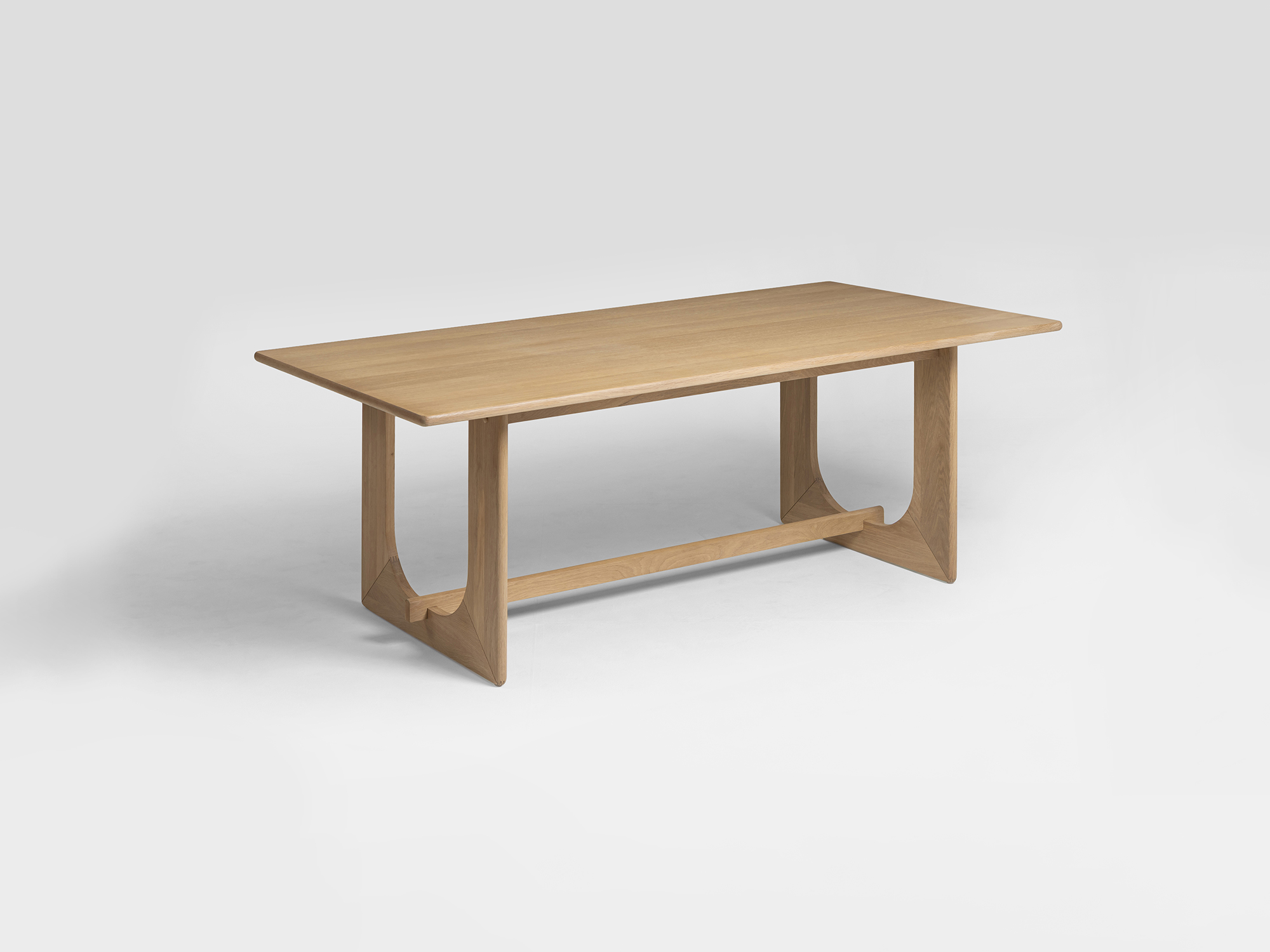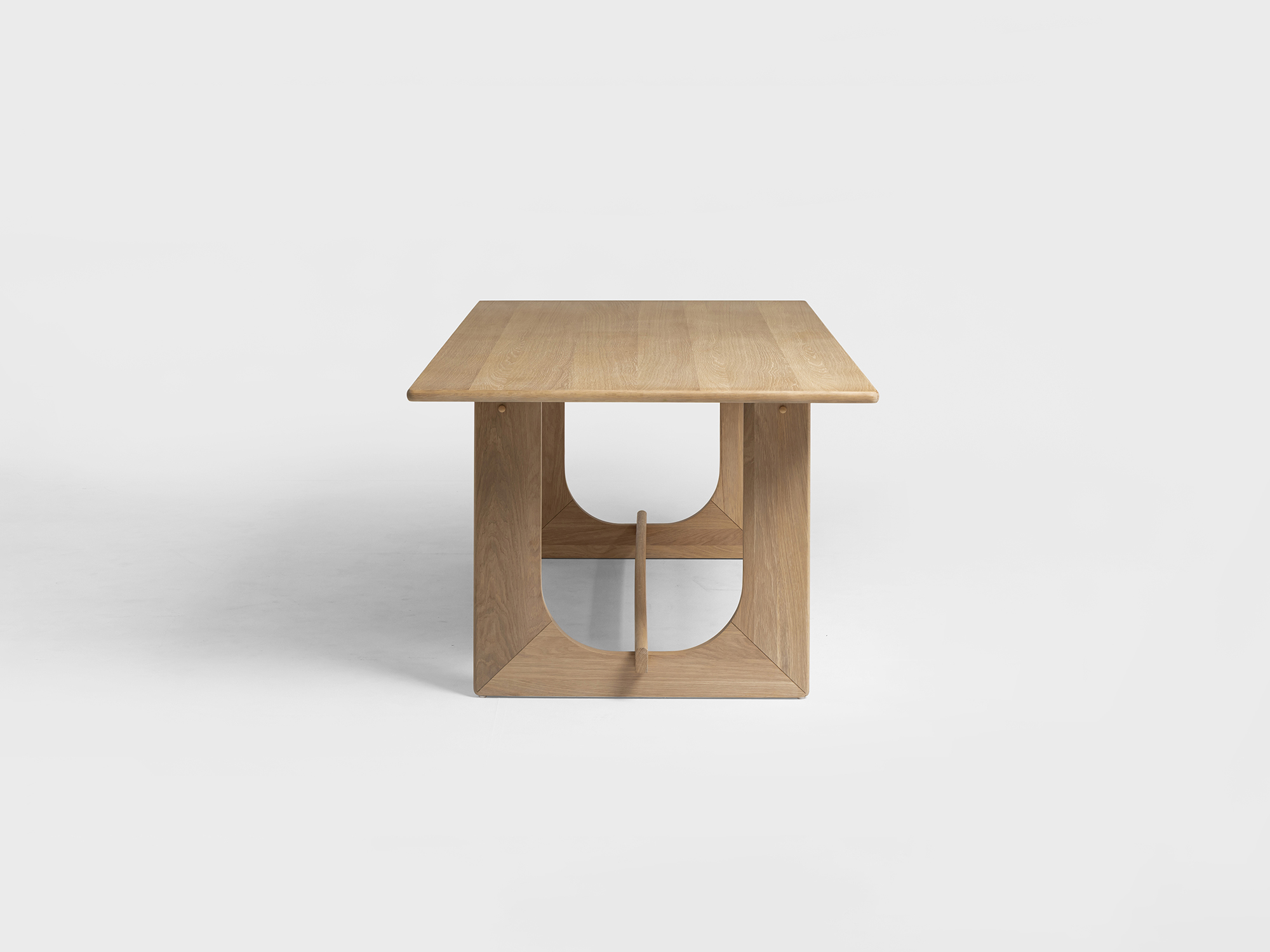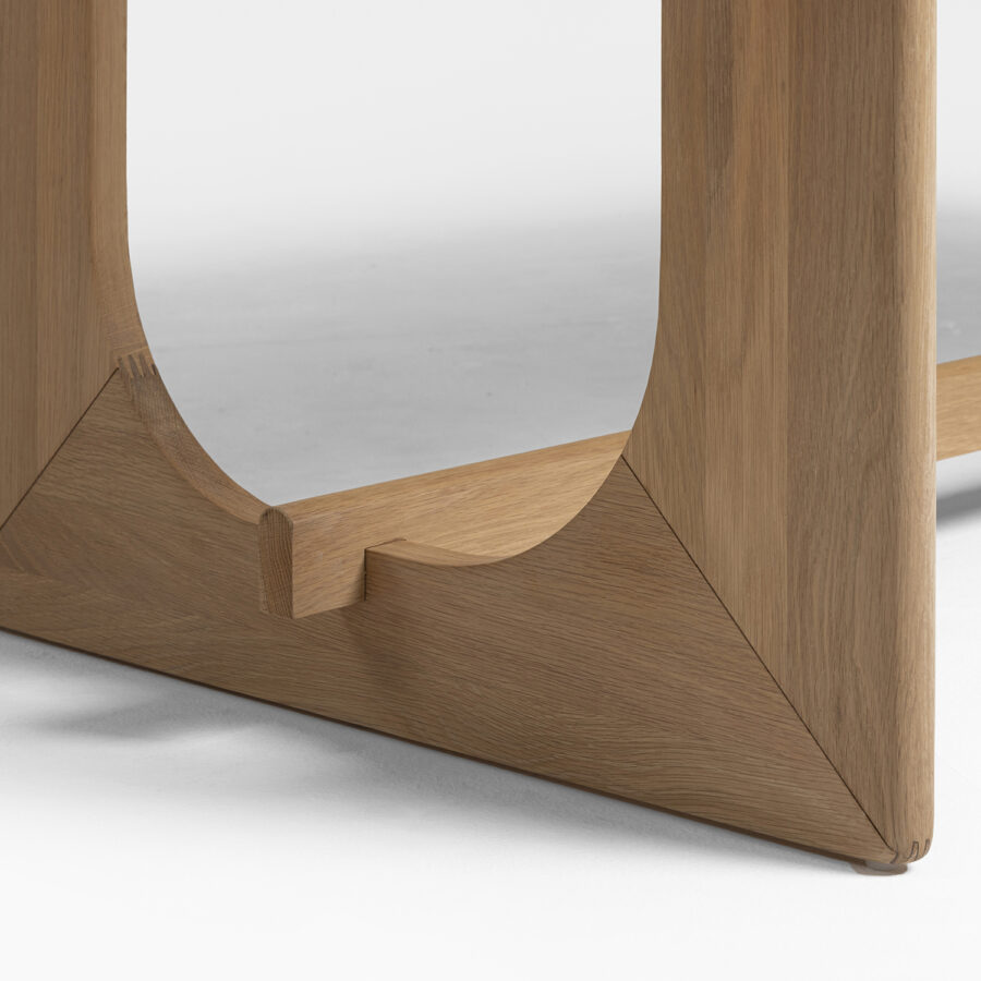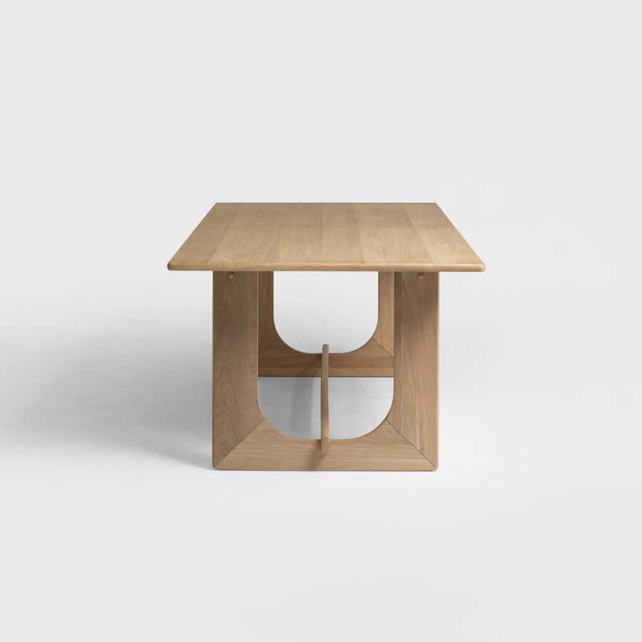 Palma matbord kombinerar skandinavisk formgivning med funktionalitet i en design som utmärker sig. De valv liknande linjerna och de naturliga materialen ger bordet en personlig och distinkt karaktär, perfekt för att komplettera inredningen i ditt hem. Bordet är tillverkat i massiv ek med bordskiva i massivt trä och ekfanér, som med sin organiska känsla skapar en harmonisk balans mellan funktion och estetik.