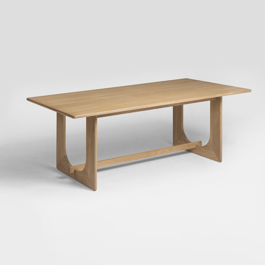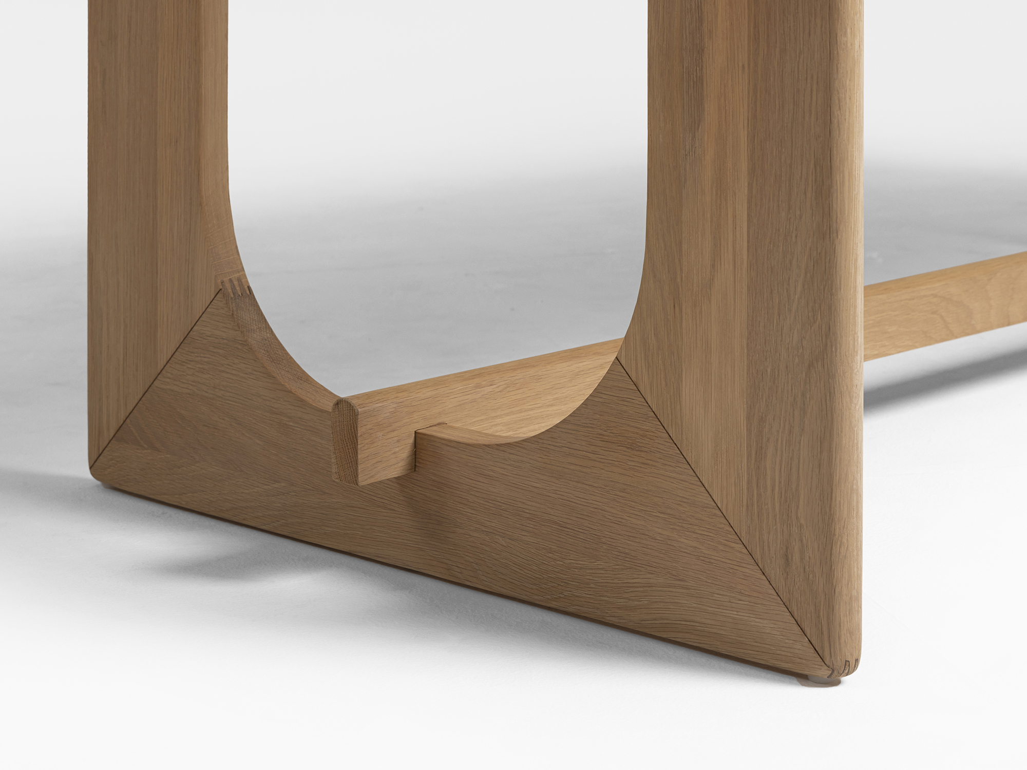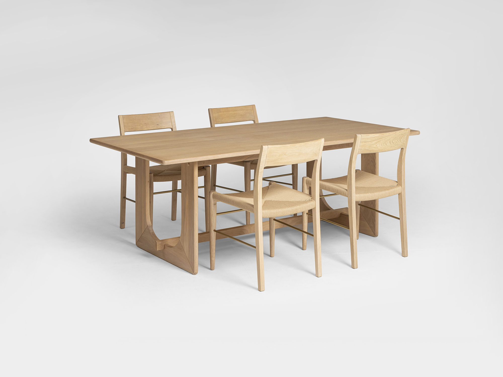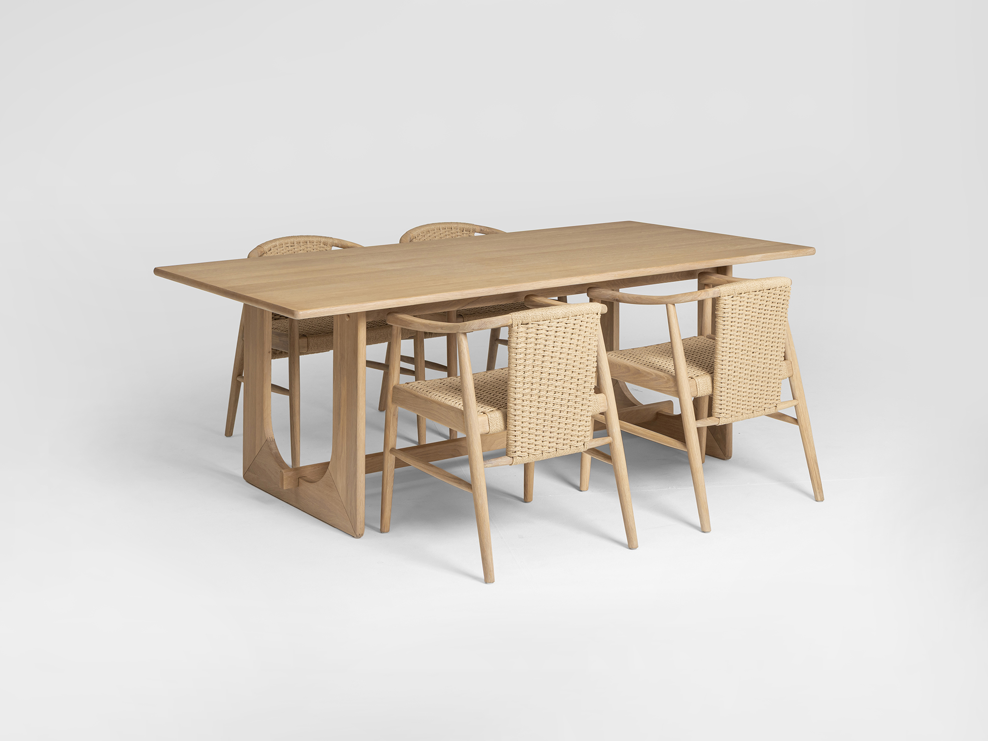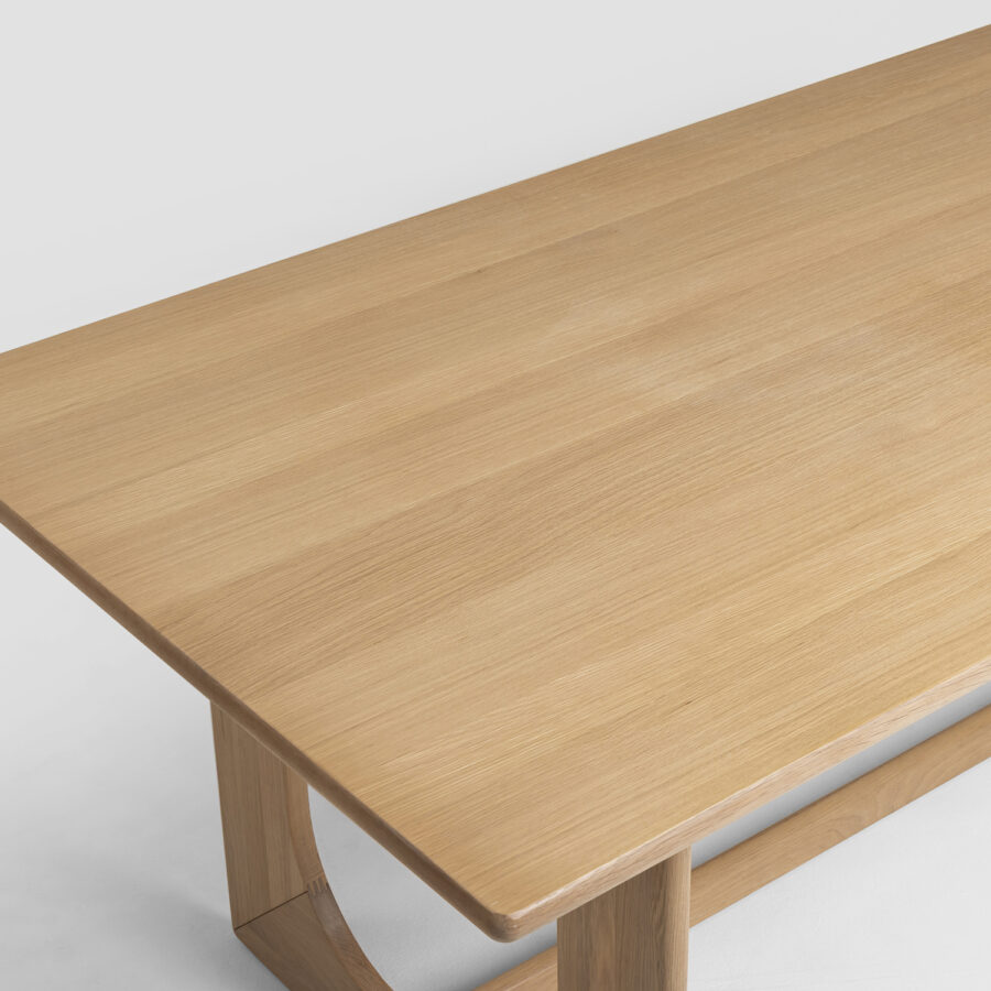 Palma matbord kombinerar skandinavisk formgivning med funktionalitet i en design som utmärker sig. De valv liknande linjerna och de naturliga materialen ger bordet en personlig och distinkt karaktär, perfekt för att komplettera inredningen i ditt hem. Bordet är tillverkat i massiv ek med bordskiva i massivt trä och ekfanér, som med sin organiska känsla skapar en harmonisk balans mellan funktion och estetik.