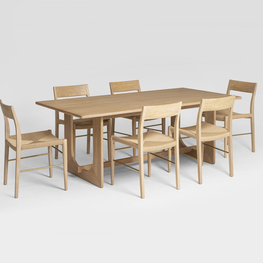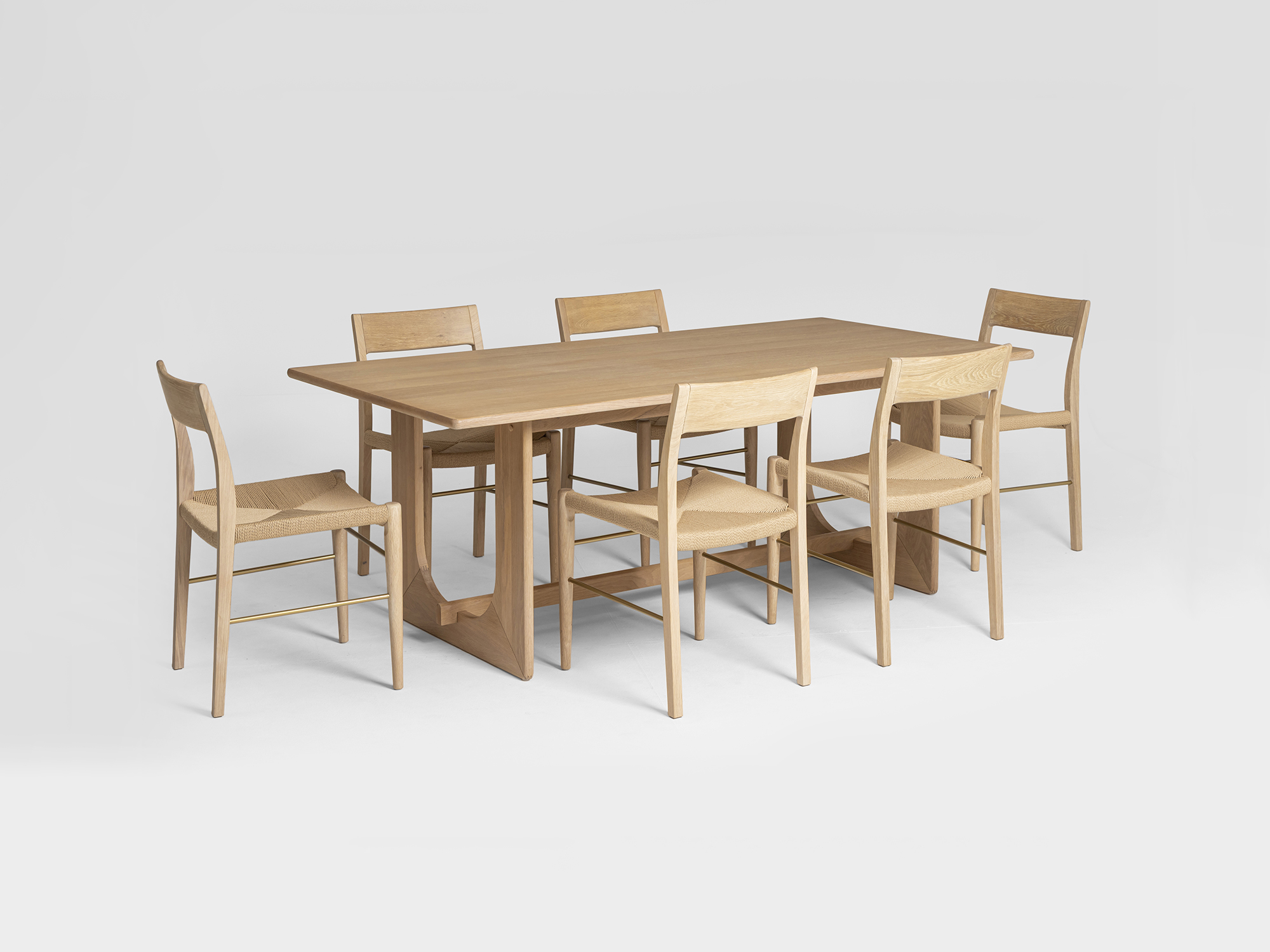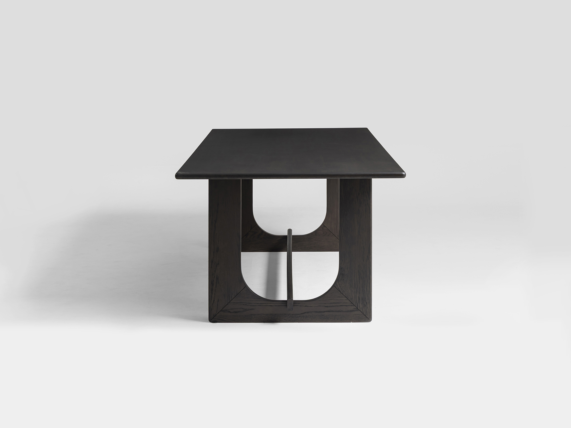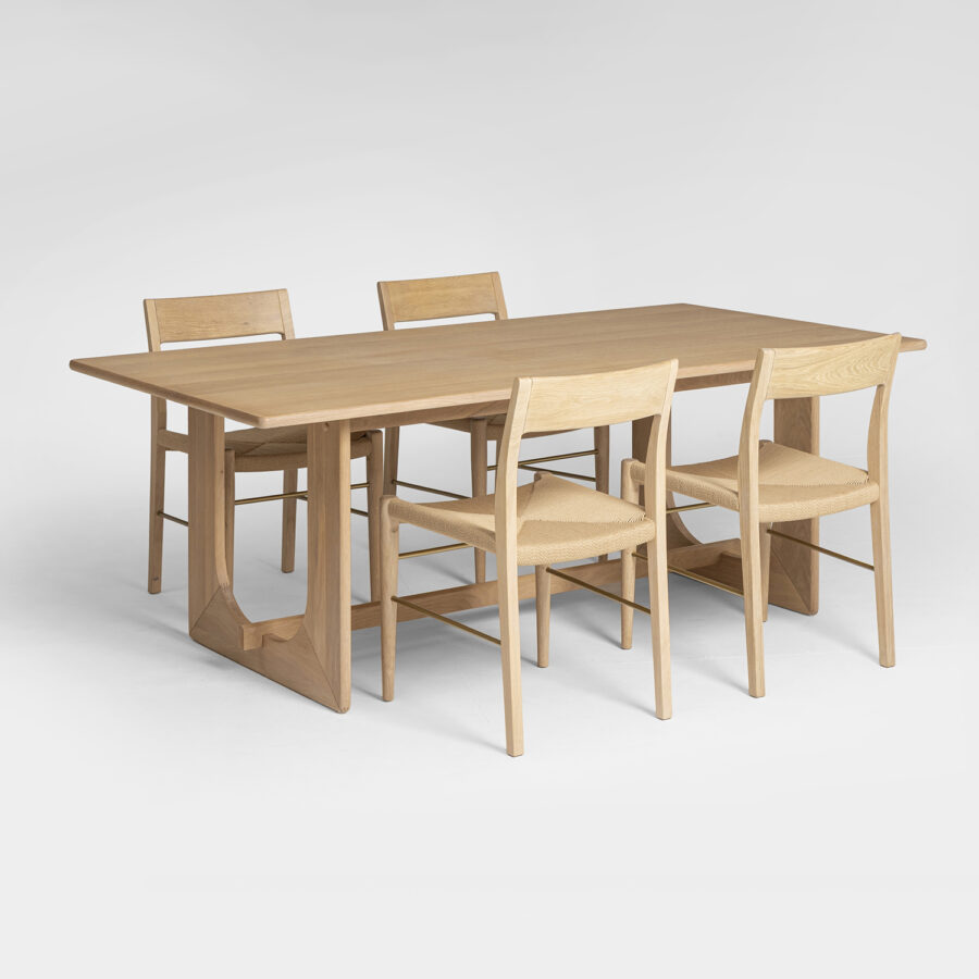Palma matbord kombinerar skandinavisk formgivning med funktionalitet i en design som utmärker sig. De valv liknande linjerna och de naturliga materialen ger bordet en personlig och distinkt karaktär, perfekt för att komplettera inredningen i ditt hem. Bordet är tillverkat i massiv ek med bordskiva i massivt trä och ekfanér, som med sin organiska känsla skapar en harmonisk balans mellan funktion och estetik.